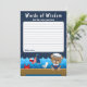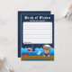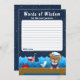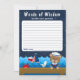 This cute and fun words of wisdom card features a nautical sailor boy bear on a wooden deck with a seagull and a crab. In the background there is a cute pink bird on a sailboat, ocean waves and a navy blue starry night sky. The text combines bold and serif fonts for a stylish and modern look. This is perfect for a nautical themed baby shower.
