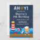 Nautical Boy Monkey Red and Navy Birthday Party Invitation