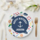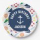 These personalised birthday party plates will be the perfect finishing touch to your nautical themed birthday party. Featuring a nautical inspired silhouette pattern and a silhouette of an anchor in the middle of each plate. Customise the text to suite your party details. Shop the entire coordinating collection for all your safari animal party needs.