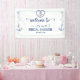 Welcome your guests in seaside style with this nautical bridal shower anchor banner! Featuring elegant navy anchors, knotted rope hearts, and soft watercolor blue textures, this customisable banner perfectly complements your “She’s Tying the Knot” theme.
