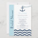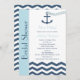 This nautical bridal shower invitation appears in shades of everyone's favourite nautical colour -- blue with a few white accents. The anchor with a heart chain is the focal point with the words "Ahoy Matey!" right below the anchor. The words "Bridal Shower" appear on a lighter blue strip on the left side of the invite and a fun chevron pattern appears at the bottom to simulate water. You can personalise this invite with all your important details to make great nautical themed invites sure to please the bride searching for a nautical theme. Copyright henishouseofpaper