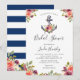 Nautical Bridal Shower Navy Stripes Anchor Floral Invitation