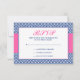 A chic navy blue and white chevron pattern with pink wedding RSVP response card. Easily customise with your details!