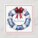 These cute coastal inspired stickers feature a nautical blue and white life preserver wreath decorated with a red bow and Christmas lights. Personalise with your choice of special holiday text on the front and back.