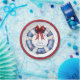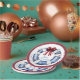 These cute coastal inspired holiday paper party plates feature a nautical blue and white life preserver decorated with a red bow and Christmas lights. Personalise with your choice of special holiday text.