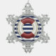 Nautical Christmas ornaments - pewter Christmas ornaments in a shape of snowflake with lifesaver and white and blue stripes.