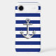 Nautical Chrome Anchor on Navy Stripes Case-Mate iPhone Case
