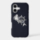 A silver chrome like applique on a navy blue style carbon fibre print decor for a perfect nautical look.