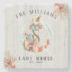 Nautical "Lake House" coasters features a coastal style boat anchor and striped seashells design. Personalise the custom text with a family last name + lake house (or other title) with the year established. Perfect for serving cold refreshments on a hot summer day – or anytime! These coasters are bright, fun, and after all summer wouldn’t be summer without the water we love so much.