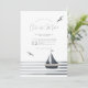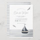 Set sail on the journey of a lifetime with this enchanting sailboat wedding invitation, gracefully navigating through serene nautical stripes in shades of bluish-grey. Embrace the timeless allure of maritime romance as you embark on your voyage together.