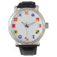 Shows nautical sailing flags for the numbers of the watch face. The flags are used for communication on the water.