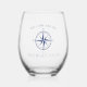 Nautical Compass Rose Boat Name Stemless Wine Glass