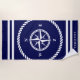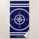 Nautical compass star rose navy blue and white Beach Towel . North East South West sign. Maritime theme towel personalised with name or boat name. Great for beach , pool, boat etc.