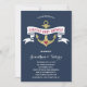 This nautical couples baby shower invitation features a faux gold glitter anchor, a blue and white vintage banner, a cute red heart, and a navy blue background.