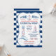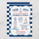Anchors Aweigh! Nautical themed invitation with anchor, lighthouse, sailboat, kissing fish, and starfish. Rope frame border. The back of the card has a striped background. The Bracket style paper option also looks great with this invitation. Customise with your own text. Please check my store for more like this. Great for Ocean, Sea, Lake events or beach parties. Original Illustration by pj_design.