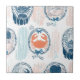 Nautical crab pattern ceramic tile with sketch-style crabs in blue and orange, framed in decorative ovals over soft blue and pink brush stroke stripes. Textured coastal aesthetic with a modern vintage feel. Ideal for seafood lovers, beachgoers, coastal style fans, and nautical trend enthusiasts.