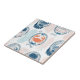 Nautical Crab Blue Orange Coastal Striped Pattern Ceramic Tile