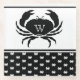 Nautical Crab Monogrammed Black and White Glass Coaster