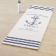 The nautical beach towel features a coastal-style boat anchor and stripes design. Personalise the custom text with a family last name + family (or another title) with the year established and location.