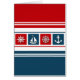 Nautical design with sailing boat, anchor, compass and sailing wheel decoration on striped background