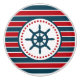 Nautical design with sailing wheel decoration in round shape with stars on red, blue and white striped background