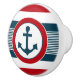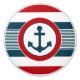 Nautical design with anchor decoration in round shape on blue, red and white striped background
