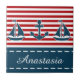 Nautical design with sailing boat and anchor decoration on red and white striped background
