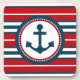 Nautical design with anchor decoration in round shape on red, blue and white striped background