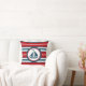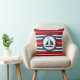 Nautical design with sailing boat decoration in round shape on red, blue and white striped background