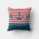Nautical design with sailing boat and anchor decoration on red and white striped background