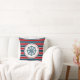 Nautical design with compass decoration in round shape with stars on red, blue and white striped background