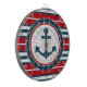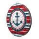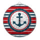 Nautical design with anchor decoration in round shape on red, blue and white striped background