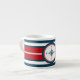 Nautical design with compass decoration in round shape on red, blue and white striped background