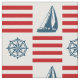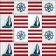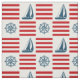 Nautical design with sailing boat and compass decoration on red and white striped background