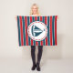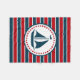 Nautical design with sailing boat decoration in round shape with stars on red, blue and white striped background