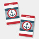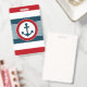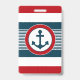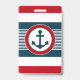 Nautical design with anchor decoration in round shape on blue, red and white striped background