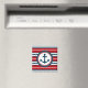 Nautical design with anchor decoration in round shape on red, blue and white striped background
