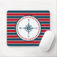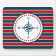 Nautical design with compass decoration in round shape with stars on red, blue and white striped background