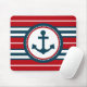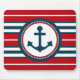 Nautical design with anchor decoration in round shape on red, blue and white striped background