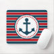 Nautical design with anchor decoration in round shape with stars on red, blue and white striped background