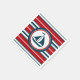 Nautical design with sailing boat decoration in round shape on red, blue and white striped background