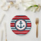 Nautical design with anchor decoration in round shape on red, blue and white striped background