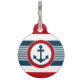 Nautical design with anchor decoration in round shape on blue, red and white striped background