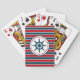 Nautical design with sailing wheel decoration in round shape with stars on red, blue and white striped background