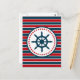 Nautical design with sailing wheel decoration in round shape with stars on red, blue and white striped background