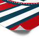 Nautical design with anchor decoration in round shape on red, blue and white striped background