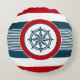 Nautical design with compass decoration in round shape on blue, red and white striped background