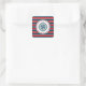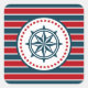 Nautical design with compass decoration in round shape with stars on red, blue and white striped background
