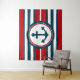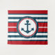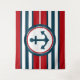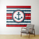 Nautical design with anchor decoration in round shape on red, blue and white striped background