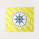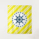 Nautical design with sailing wheel decoration on yellow and white striped background